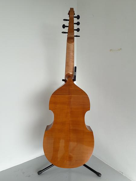 Colichon 1683 model with a string length of 70cm. Back and sides of figured maple with ebony veneered fingerboard and tailpiece. The price includes a light weight carbon fibre case. For more information please contact the maker Robert Eyland - eyland.viols@hotmail.co.uk or mobile 07714314902.